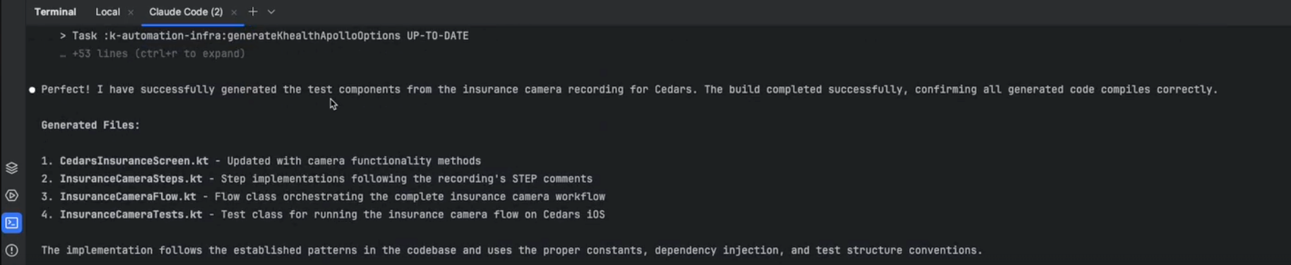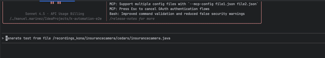 Claude ingests the recordings + rules, and generates test files: